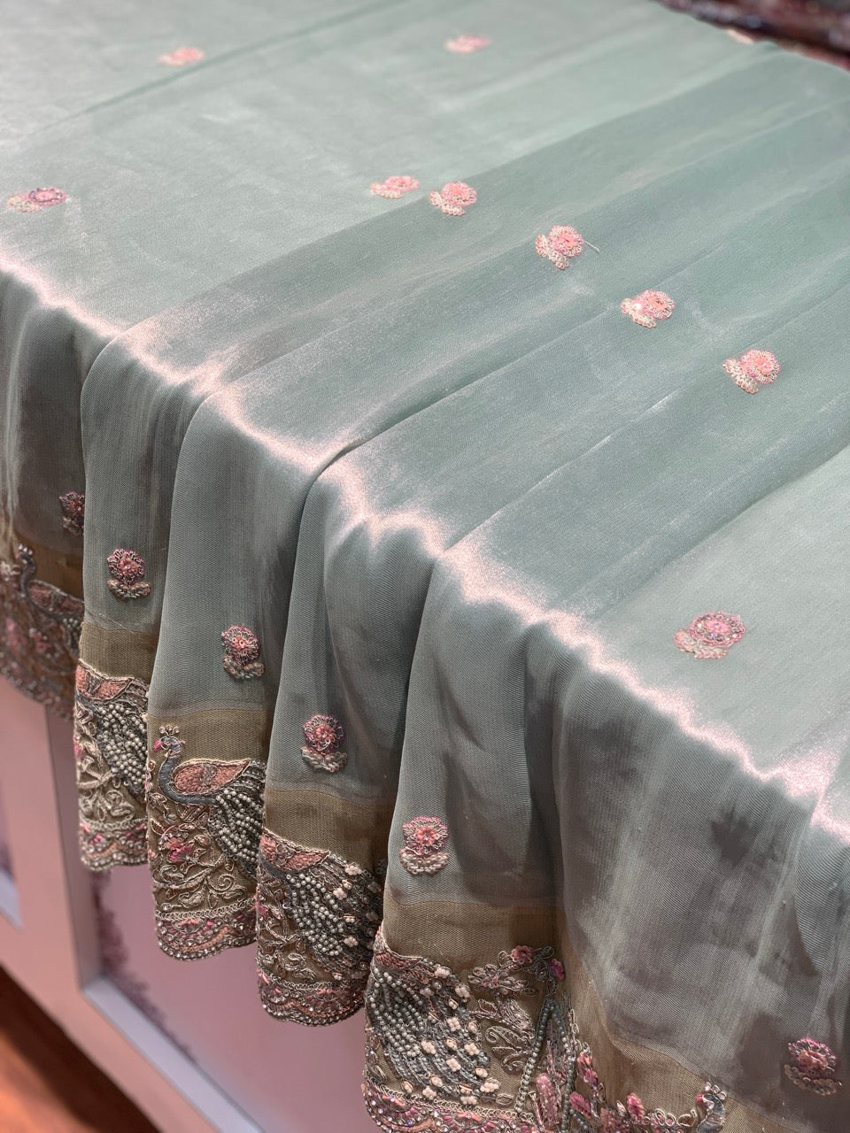 Sea Green Tissue Silk x Hand Embroidery